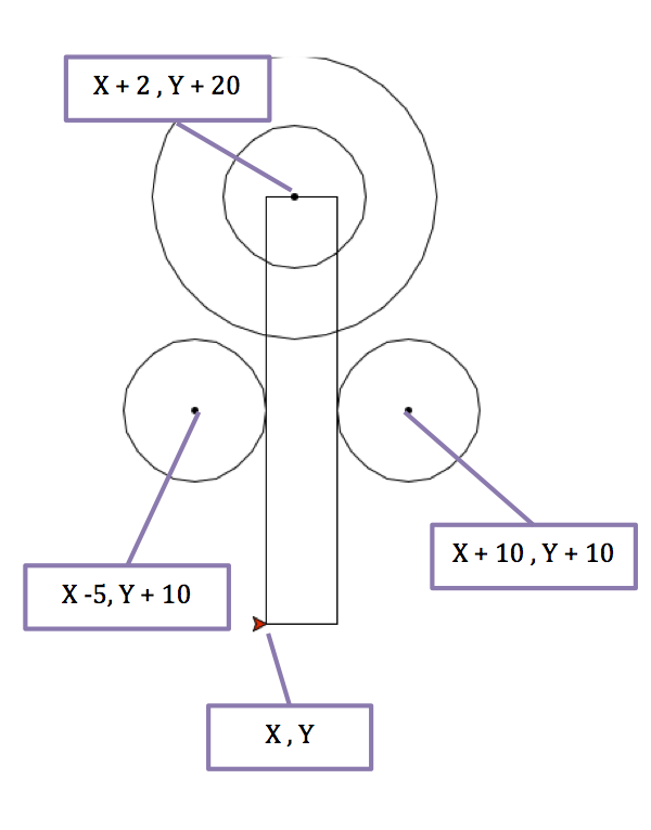 It might be helpful to explain how to position elements of the flower using by adding and taking from the X,Y co-ordinates of the flower's position using the diagram here.
